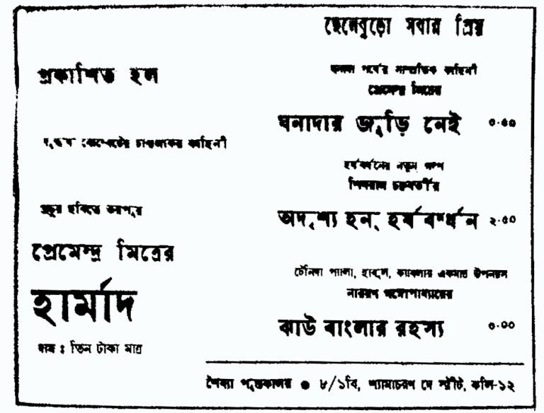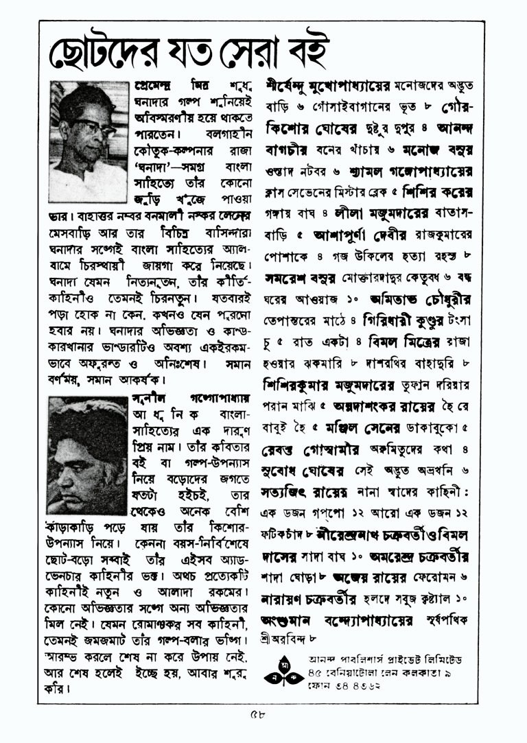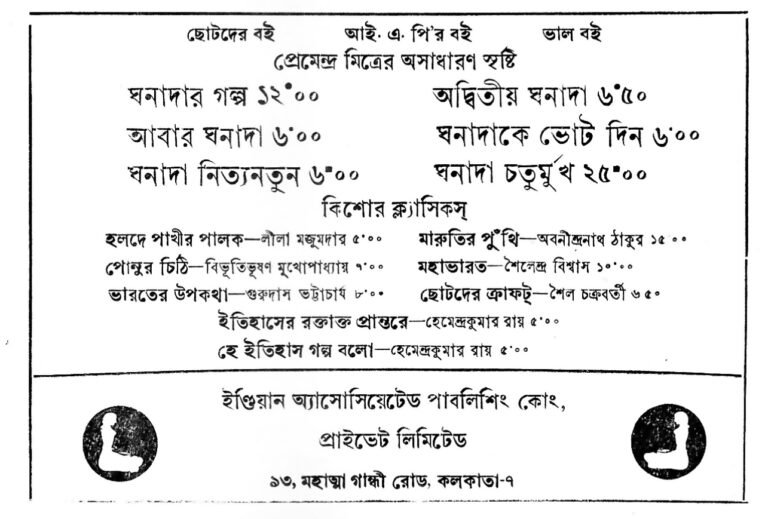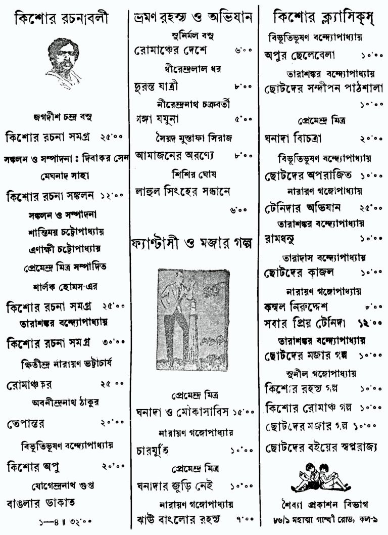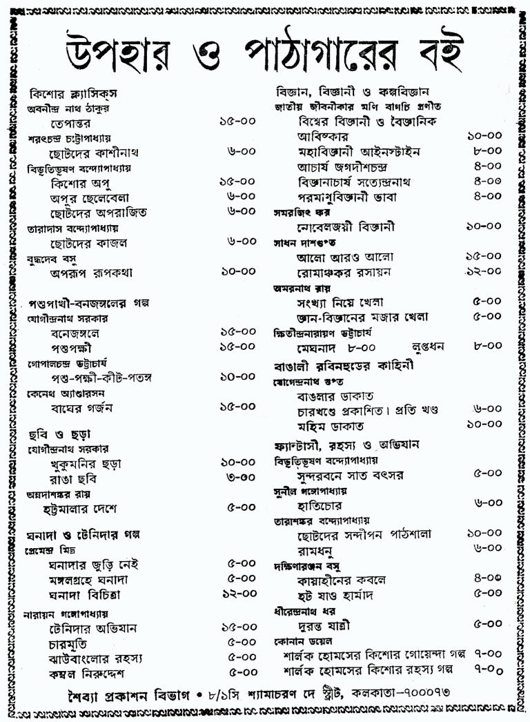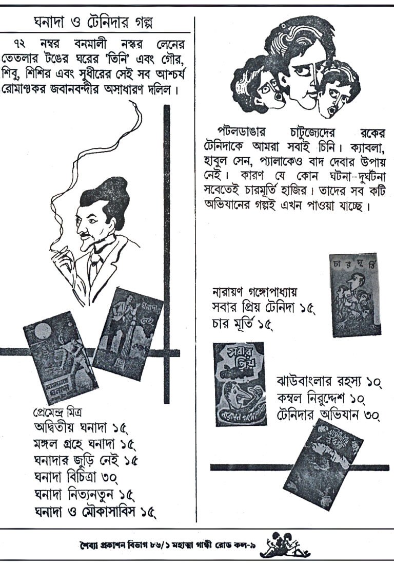 Juvenile fiction in Bengali is dominated by the ‘Da’-s. Tenida, Pheluda, Wrijuda, Pindida….