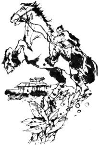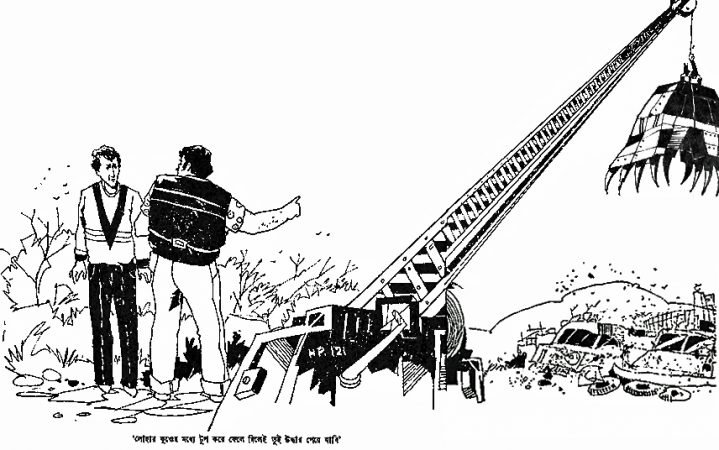From Ghanada’s Mou-Ka-Sha-Bi-Sh phase.The introductory portion of this tale first appeared in Kishore Jnan Bijnan, May 1984. Ghanashyam was disguised as a decrepit old foreigner in his own tale. All artists concerned seem to have missed this.