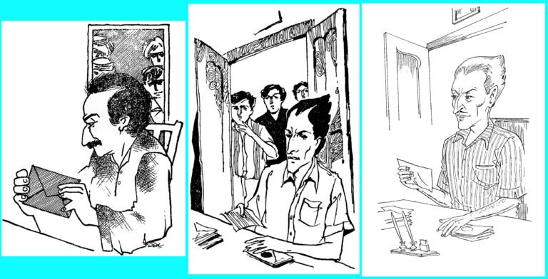 These three sketches by Samir Mondal, Alay Ghoshal & Onkar Nath Bhattacharya [From Ghanada Samogro 2] are rather similar in composition
