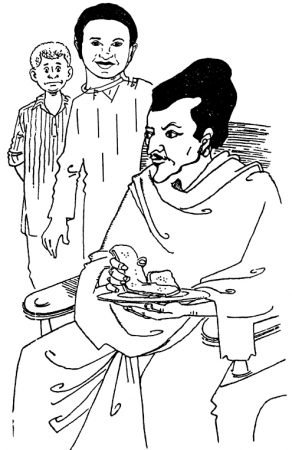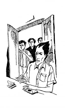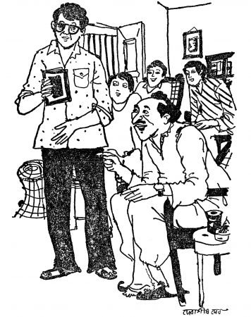 From Ghanada’s Mou-Ka-Sha-Bi-Sh phase.The introductory portion of this tale first appeared in Kishore Jnan Bijnan, May 1984. Ghanashyam was disguised as a decrepit old foreigner in his own tale. All artists concerned seem to have missed this.