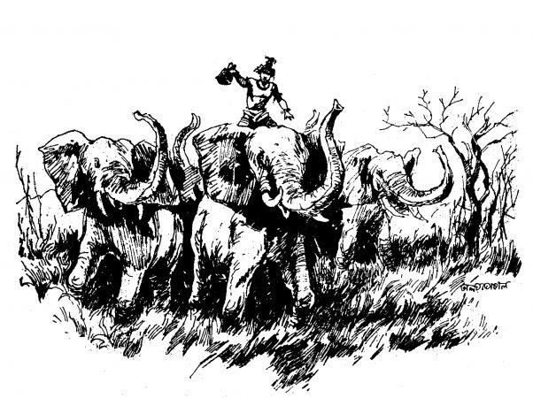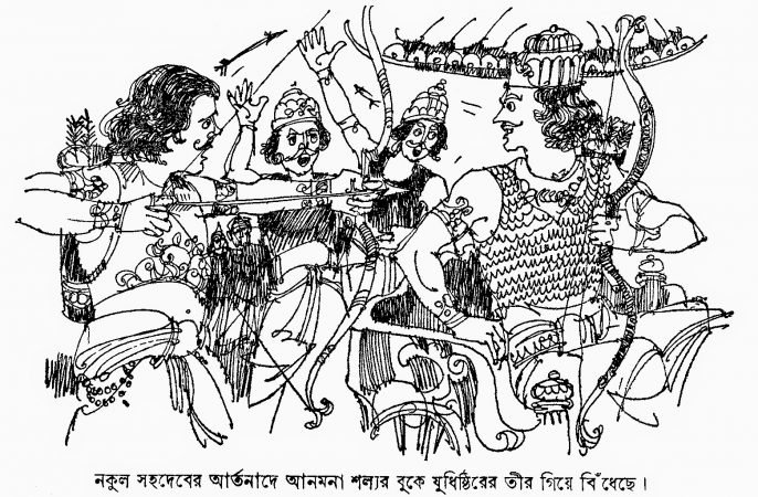 Contributing Artists: Amit Chakrabarty, Prasenjit Das One sketch is based on Subodh Kumar Dasgupta’s for Jayadrath Badhey Ghanada